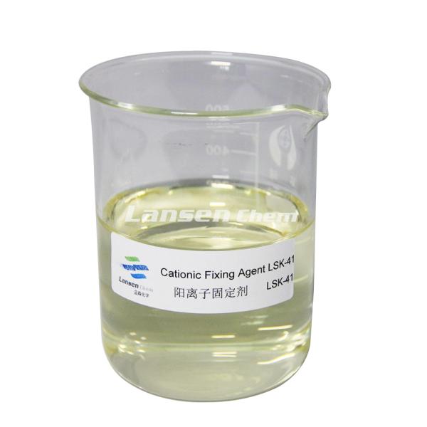 Fixing agent LSK-01 is a quaternary ammonium cationic polymer. It is colorless liquid, readily soluble in water.